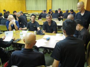 | 【社内ミーティング】 毎月一回、社内全体ミーティングを行い、交通・荷役作業の安全確認を行うとともに小集団に分かれ目標を設定し、日々努めております。また、年一回外部講習を招き、安全意識を高めております。 |