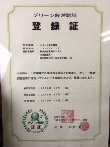 | 【グリーン経営】 グリーン経営を取得し、環境への配慮をしております。 |
